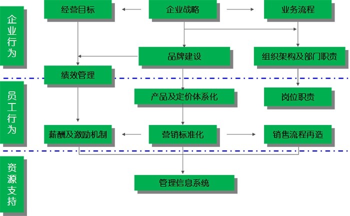 針對民營企業(yè)營銷系統(tǒng)建設(shè)滯后所造成的企業(yè)經(jīng)營績效低下、品牌影響力薄弱、市場開發(fā)效能無法最大化、營銷團隊薪酬考核設(shè)計不合理、業(yè)務(wù)流程混亂等經(jīng)營管理難題,《企業(yè)營銷系統(tǒng)》咨詢項目憑借強大的咨詢師團隊和資深的實戰(zhàn)經(jīng)驗,為企業(yè)提供系統(tǒng)性指導(dǎo)思路,傳授先進有效的管理方法,幫助成長型企業(yè)由小到大,由弱到強,完成企業(yè)在營銷架構(gòu)、業(yè)務(wù)流程、薪酬績效、品牌建設(shè)等方面的專業(yè)化提升,為廣大中小企業(yè)突破發(fā)展“瓶頸”,實現(xiàn)持續(xù)、穩(wěn)定的發(fā)展提供可靠的智力支持。